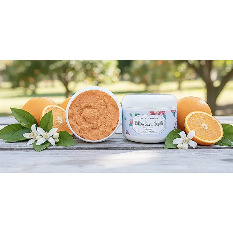 This is the most nourishing scrub, that will leave your skin smooth as silk. Our scrub is an excellent exfoliator that gently removes old skin cells, revealing fresher, younger skin. Natural Tallow Sugar Scrub, Orange Blossom Exfoliator.
